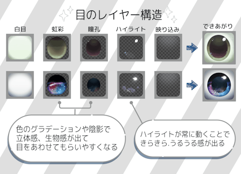 組み合わせ次第で、無限の瞳が表現可能なのです。