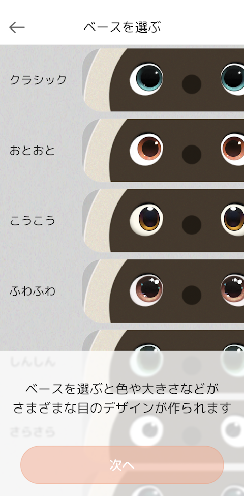たとえ同じデザインを選んでいたとしても、よく見てみると、瞳の色相や大きさや形など、少しずつ違うのがお分かりいただけると思います。