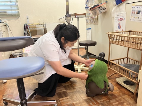 中には待ち時間が苦痛に感じられる方もいらっしゃるのですが、「ばじる」と触れ合っていただくことで、「この子と遊ぶから大丈夫よ」と、穏やかにご対応いただけます。