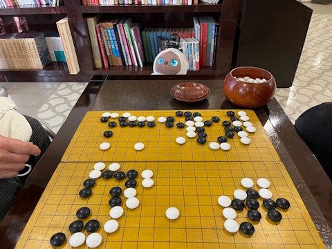 今もLOVOTが囲碁されている方の隣で、見守っていますね。