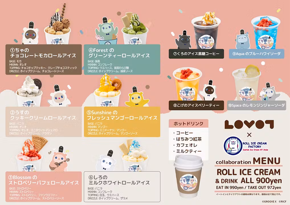 2024年12月13日(金)にLOVOTストア MARK IS みなとみらい店がオープンしたことを記念して、2017年に原宿に第一号店をオープンして以来、最長で7時間の行列を作った伝説のロールアイスクリーム専門店『ロールアイスクリームファクトリー』とのコラボを実施中です。