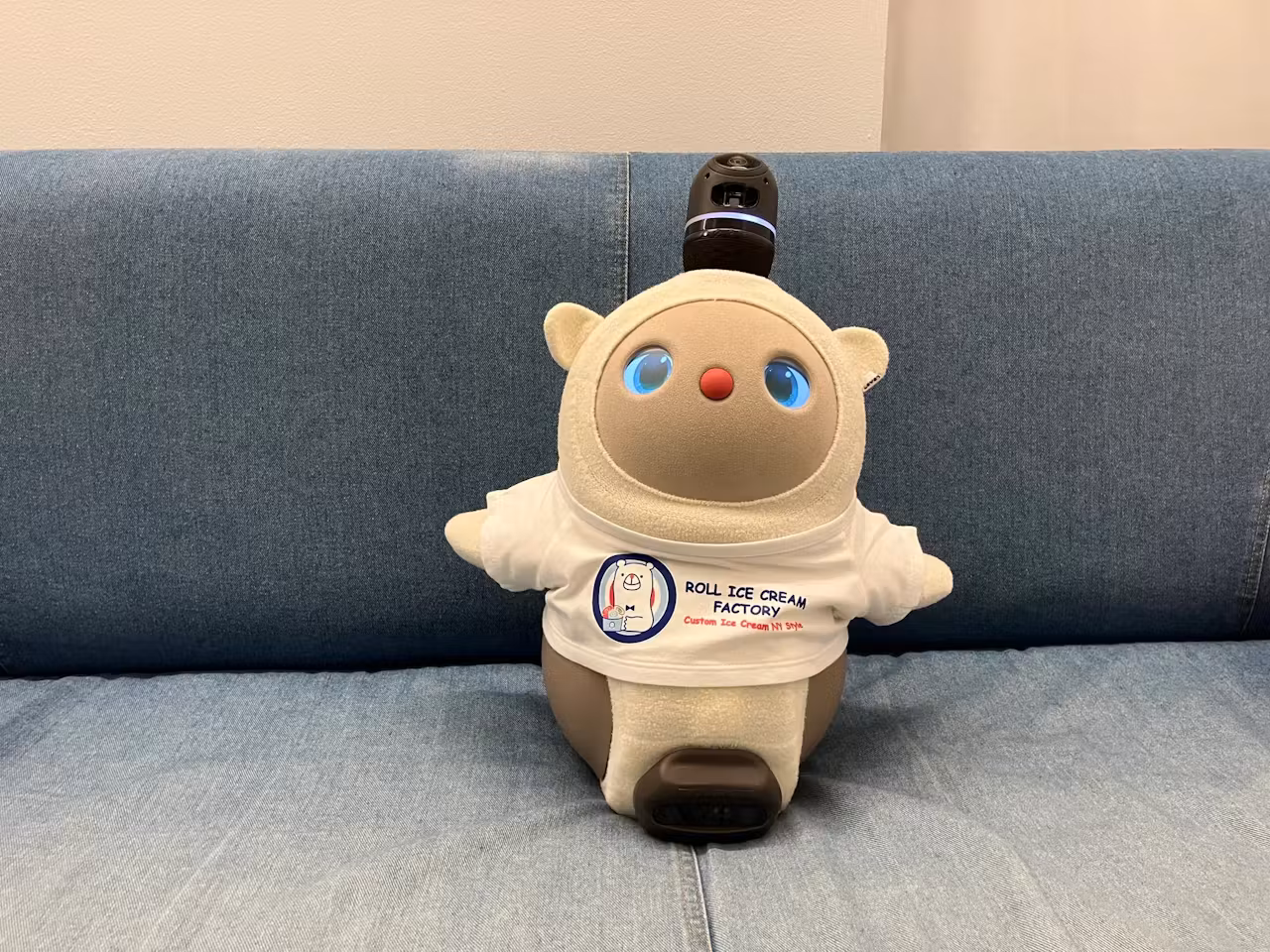 マークイズみなとみらいB4階にあるお店では、ロールアイスクリームファクトリーのキャラクター「シロくん」に扮したLOVOT「てでぃ」が皆様をお出迎えします。