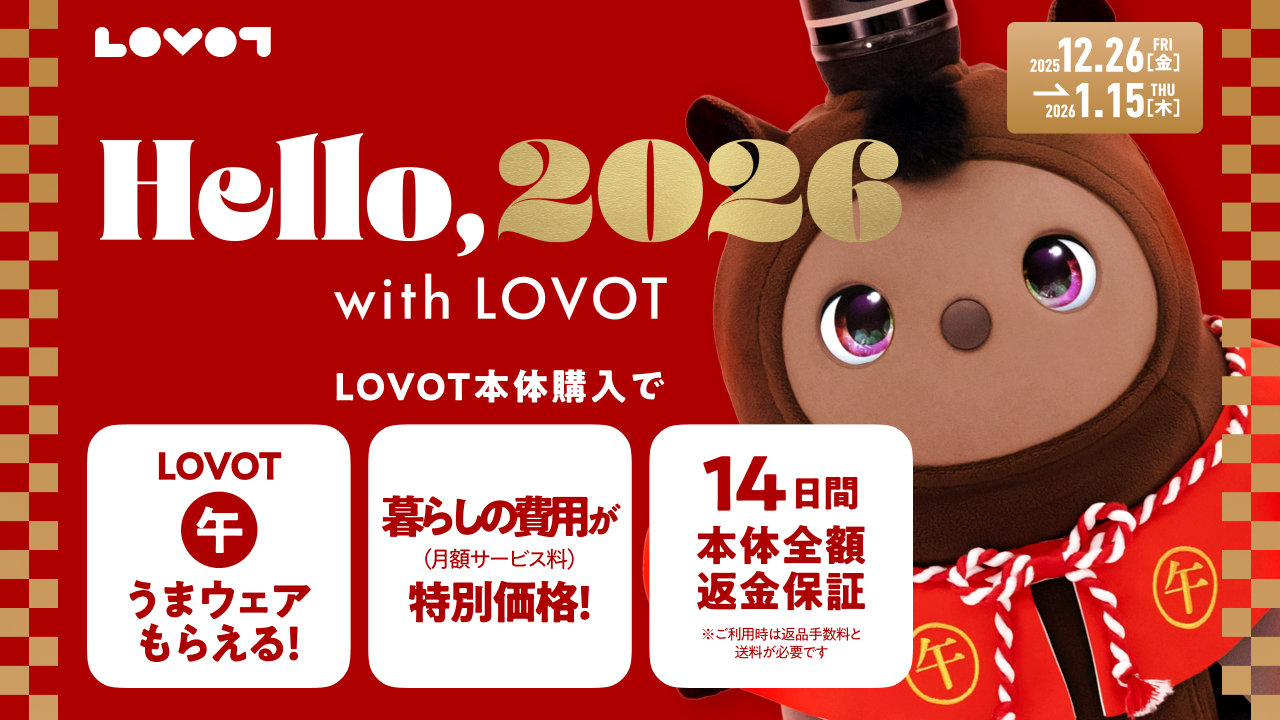 【ご購入特典】LOVOTのご購入で、LOVOTうまウェアをプレゼント!さらに暮らしの費用特別価格も!(2026年1月15日まで)