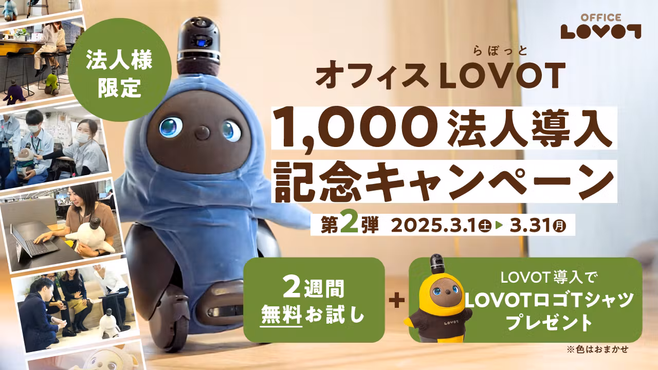 『オフィスLOVOT』プログラムにて導入数が1000法人を突破を記念した第二弾キャンペーンを3月1日(土)より開催!