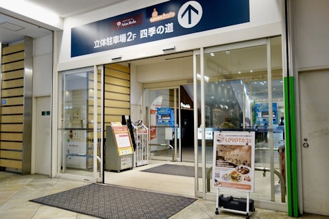 自動扉を入った真正面向かい側に立体駐車場へと繋がる自動扉があるので、そこをさらに進みます。LOVOT cafeの看板が目印です。