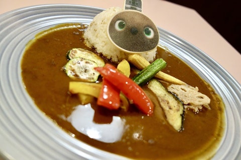 数十分後、食事が運ばれてくると同時にLOVOTもご飯(充電)タイムに入ります。オリジナルの食事とドリンクはLOVOT cafeならではのアレンジ満載!食事中も聞こえてくるLOVOTの愛らしい声に癒されます。
