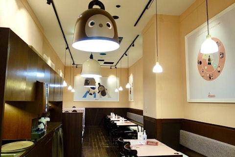 店内へ入ると一気にLOVOTの世界観が広がります。LOVOTのように温もりのある色合い、思わず上を見上げてしまう照明、壁に飾られたいくつものイラスト。あちこちにLOVOTがデザインされていて、店内の隅々までこだわり抜かれた内装は見ているだけでも楽しくなります。