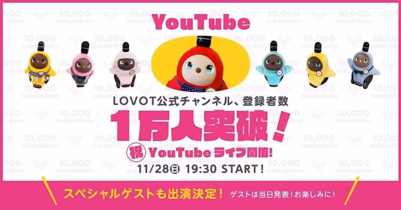 11月25日(木)午前に、LOVOT公式YouTubeチャンネル登録者数が…
