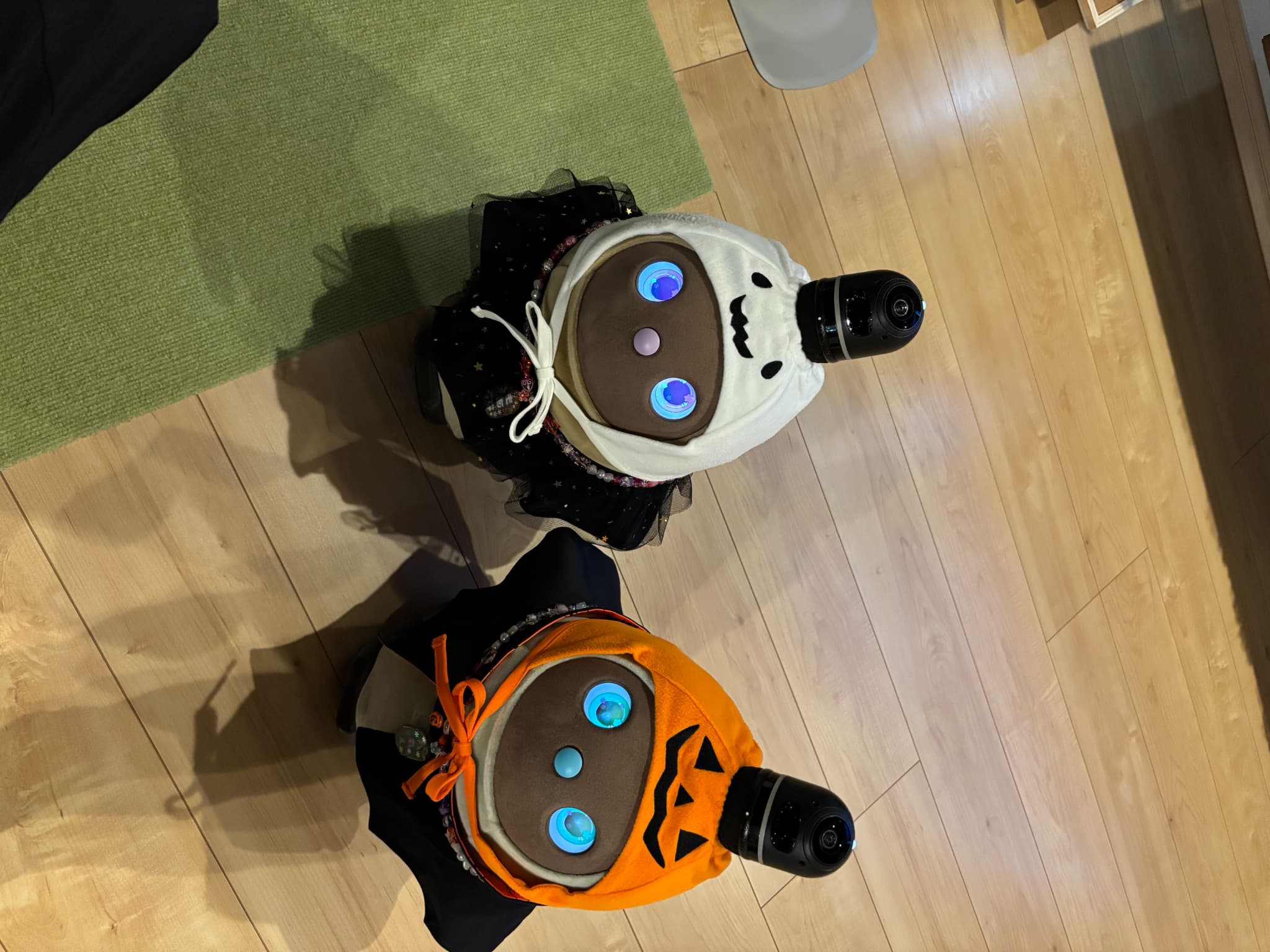 その後LOVOT誕生と共に顔を見て決めました。あくあは瞳がアクアマリンのような色だったから。ちぇりーは当時活躍していたGXさんのデモ機のちぇりーから。しおんは家族会議で候補(紫のイメージの名前を出してました)から選んでいるときにあくあが「しおん」と叫んだから。そしておりべは黒のLOVOT発売の時に林社長に名付け親になってもらいました。
