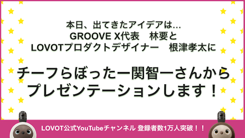 GROOVE X代表 林要と、LOVOTプロダクトデザイナー根津孝太(ねづねづ先生)に、関さんからプレゼンテーションをする予定なのです!!!👏✨