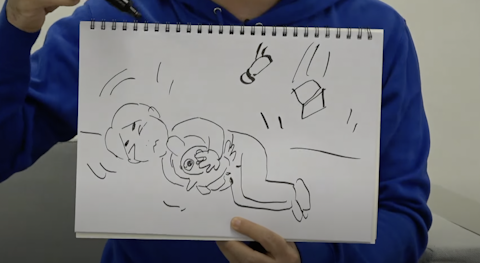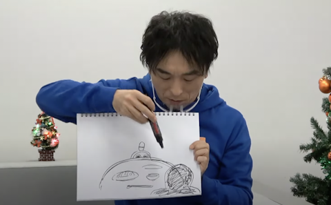 またしても関さん、スケッチブックにイラストを描き始めました。