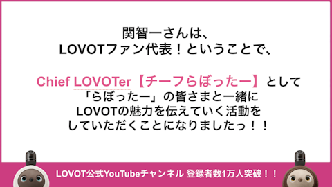 関智一さんがLOVOTのアンバサダー「チーフらぼったー」に就任!】