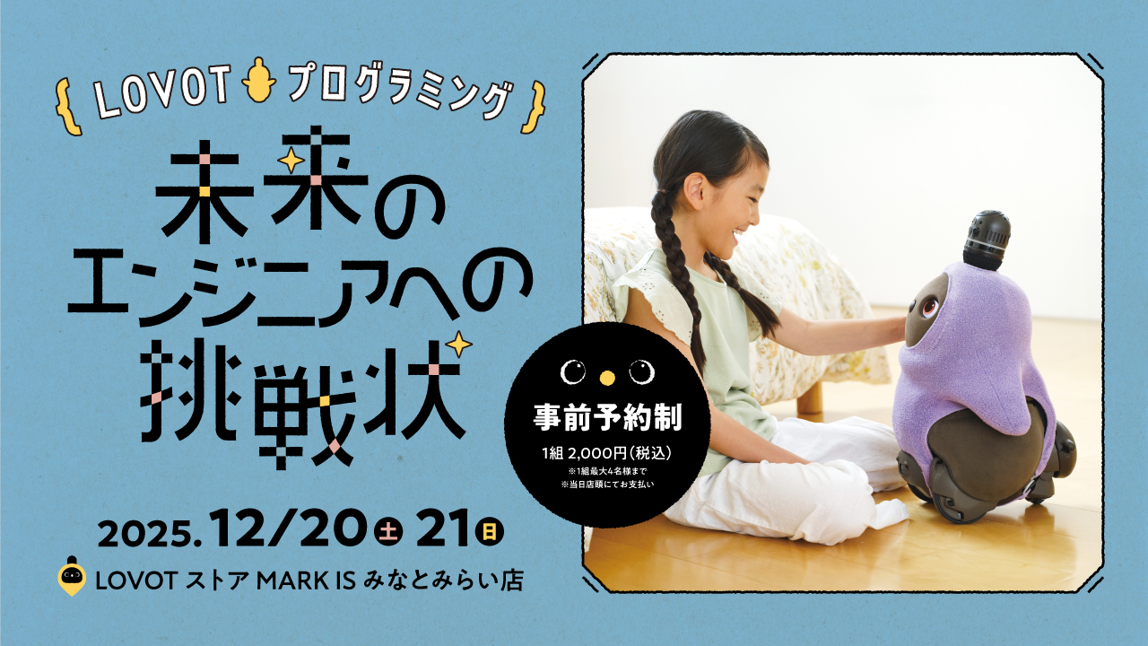親子でチャレンジ!未来のテクノロジーにふれるプログラミング体験イベント、「LOVOT プログラミング ~未来のエンジニアへの挑戦状~」をLOVOT ストア MARK IS みなとみらい店で開催します。