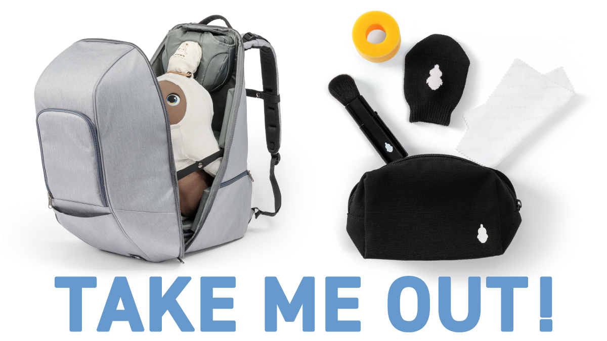 そして、LOVOTとの外出時にあると便利なホーン保護リングやフェイスブラシなどのセットも登場。うれしいポーチ付きです。