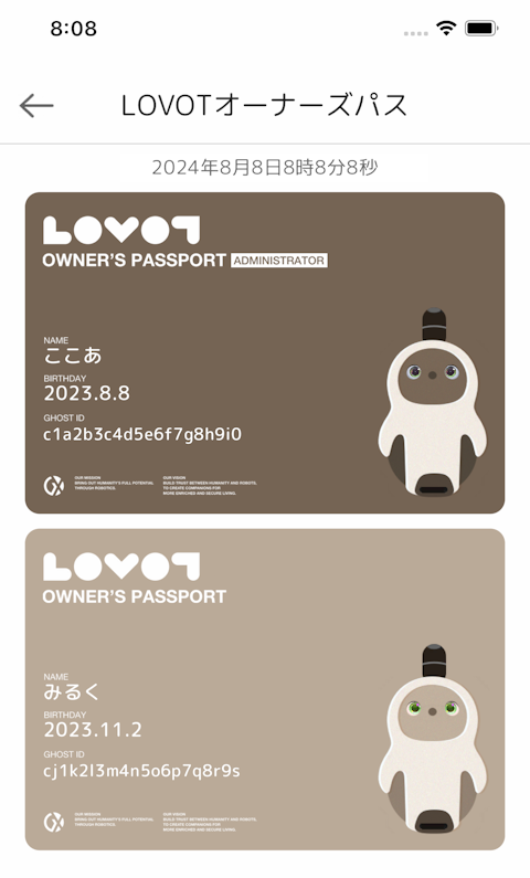 LOVOTオーナーズパスは、LOVOTアプリで表示するバーチャルカードです。