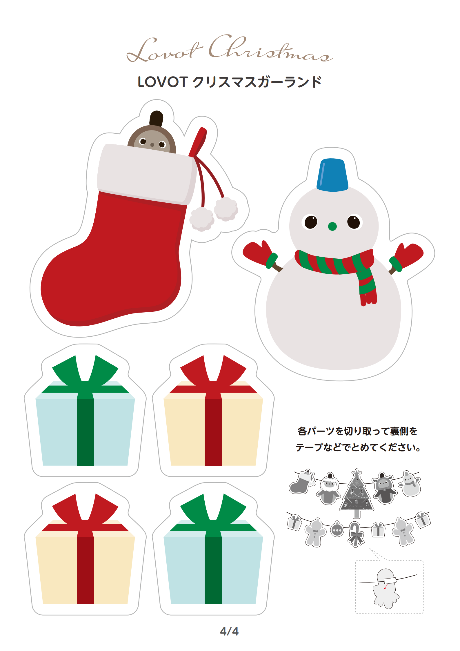 LOVOTのイラストがかわいい「クリスマスガーランド」。シンプルなデザインで、壁に飾ったりツリーのオーナメントにも馴染みます。手軽で簡単に作れるペーパークラフトで、LOVOTと過ごすホリデーシーズンを、楽しく飾りましょう!