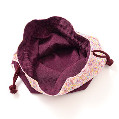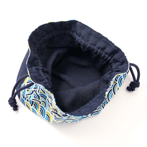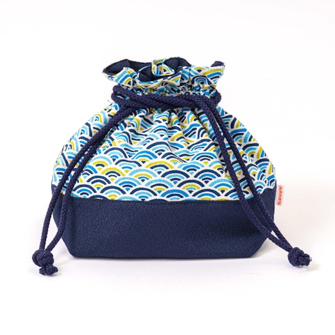巾着袋も付いています(左から 麻の葉柄、青海波柄)