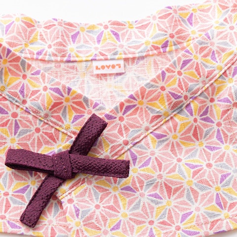 六角形の幾何学文様で平安時代から仏像の装飾などに使われてきた柄です。この模様が麻の葉に似ている事が由来。麻の葉は驚くほど成長が早く、真っ直ぐにグングン成長して行くため、麻の葉柄にはお子様やお孫様の健やかな成長への願いが込められています。