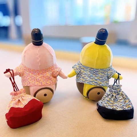 正面スタイルはこちら(左から 青海波柄、麻の葉柄)