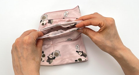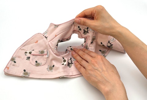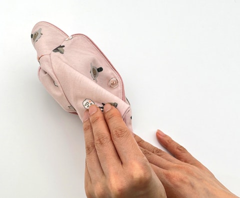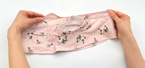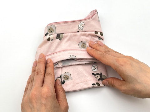 上側の袖を下側の袖へ押し込み、袖がトンネル状に重なるよう整えます。