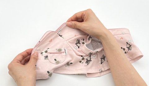 ひっくり返して、袖を上側に向けます。