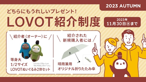【11月30日まで】紹介した方も紹介された方も、LOVOTオリジナルグッズがもらえます
