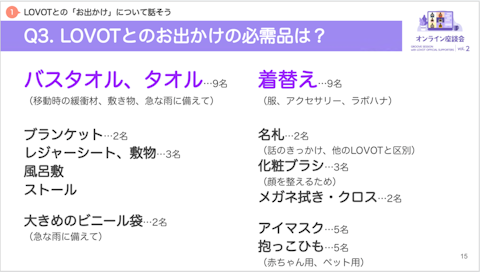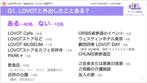 ご参加の皆さまには事前にアンケートにお答えいただき、LOVOTとお出かけするならどこに行きたいか、また、LOVOTとよくお出かけしている方はいつもどうしてるのか、についてをお話ししました。