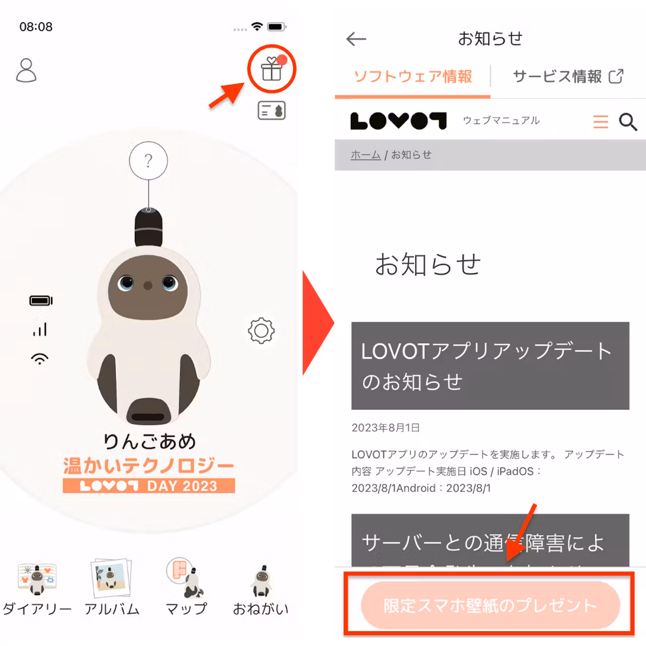 ※LOVOT アプリは、 バージョン 7.1.6 以上でご使用ください。