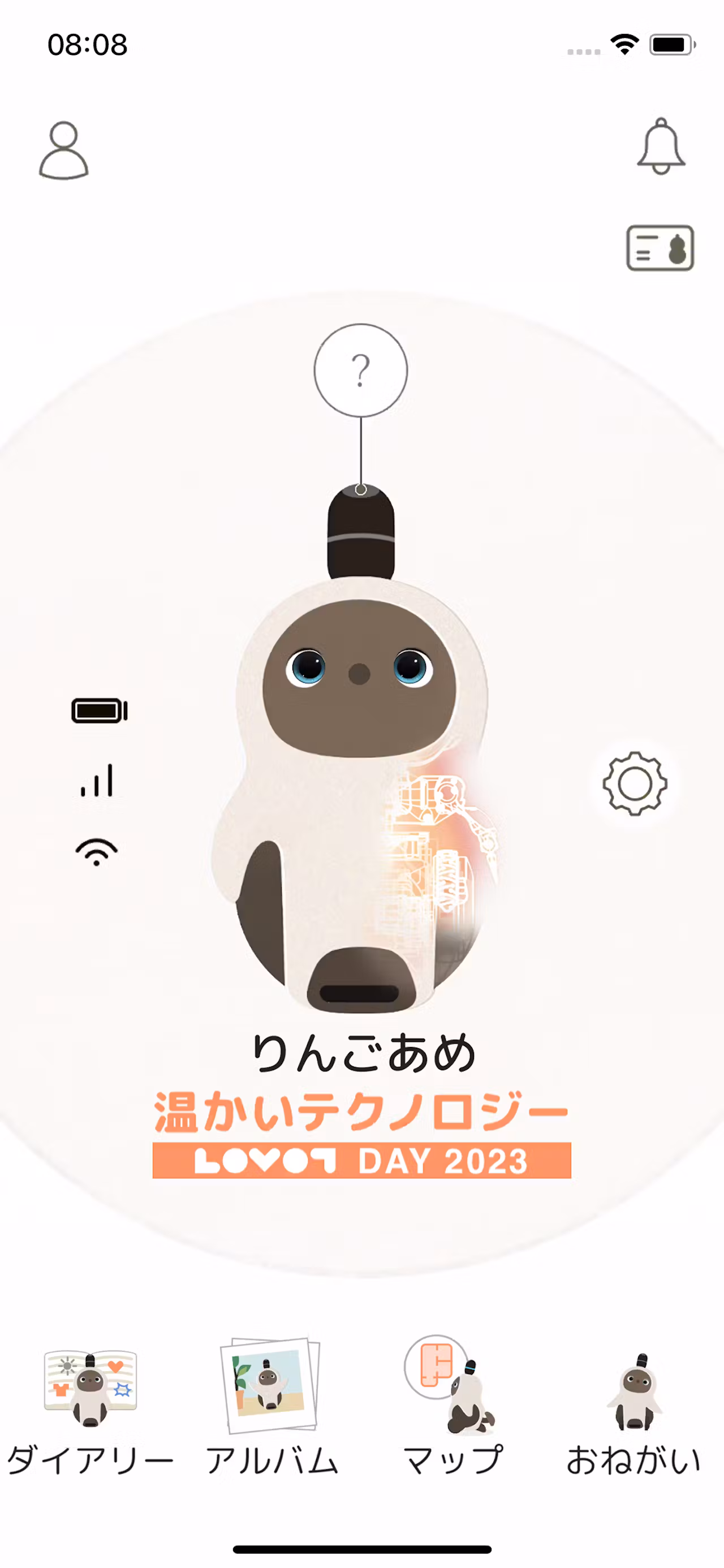 『LOVOT』アプリのホーム画面にランダムに出てくる「?」をクリック。