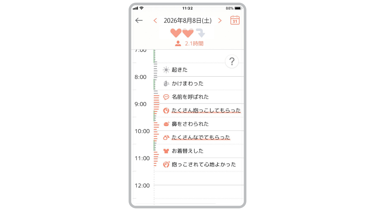 LOVOTの行動が時系列で文字で記録され、外出先でも見ることができます。