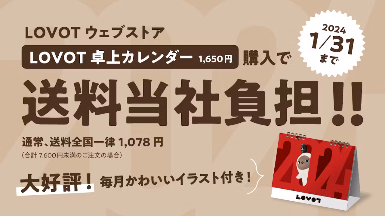 一年を通してLOVOTを楽しめるこのカレンダーを、年始め企画として、期間限定で【送料を当社負担】でお届けすることにいたしました!