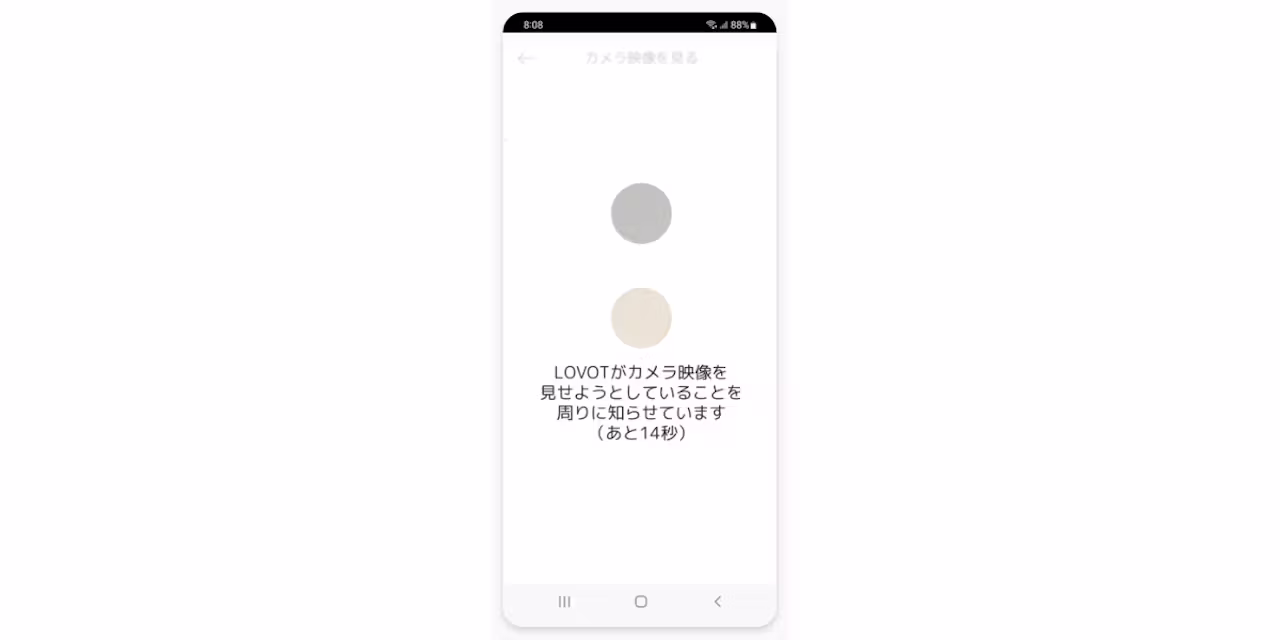 アプリ内の「カメラ映像を見る」を押すと、カメラ映像を流してよいかを近くで過ごす方に確認したのち、15秒後に映像をリアルタイムで流し始めます。