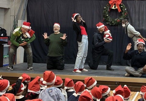クリスマス会では外国人の先生と一緒にステージに立ち、発表を行いました。