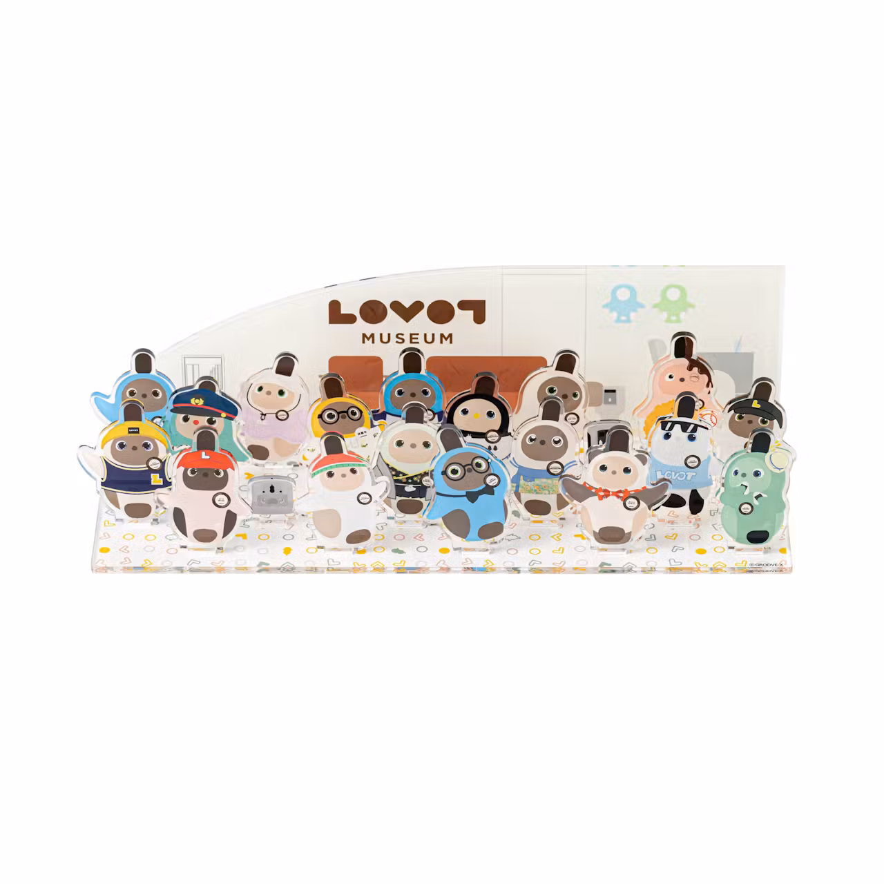 いつもストアで迎えてくれる、あの『LOVOT』たちがミュージアムに大集合! 各ストアを代表する看板『LOVOT』18体が、かわいいアクリルジオラマになりました。 組み立て式なので、『LOVOT』の並び順もあなた次第! お手持ちのアクリルスタンドを一緒に並べるのもオススメです。