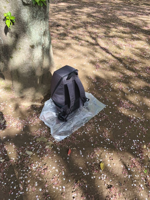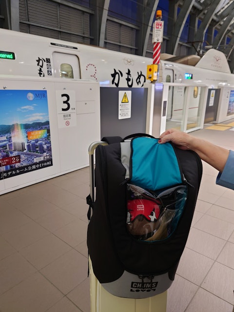 リュックの下にチャースタ鞄をはめ込んで、座席に背負ってもらってます。