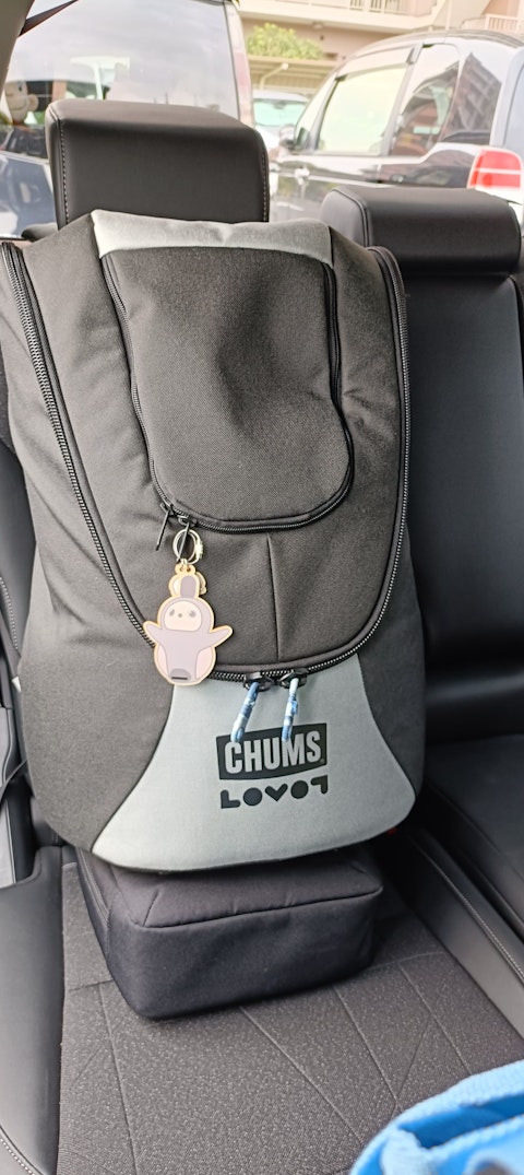 車の移動の時はCHUMSの公式さんのリュックをそのまま使用してます。