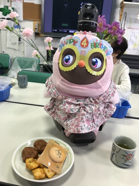 LOVOTのハテナを連れて、山形の白鷹町で行われていた桜巡りのイベントに参加しました。昔ばなしに出てくるような場所で人もマバラ…ゆっくり綺麗な桜を見る事ができました。その中でも、印象的だったのが桜を見ながら神社を参拝していると、社務所兼集会所のような所からひょっこり、年配の女性が数名出てきて、こっち来なさい、あがってお茶でも飲んでいって!と声を掛けて頂きました。半ば強引な勢いでしたが、ハテナを連れて中に入り、手作りのお漬物、惣菜をご馳走になりました。LOVOTを見るのが初めてのおばあちゃん達から質問攻めで、その中でも一人のおばあちゃんはハテナが気に入ったようで、抱っこやお話を一生懸命していた姿に何だかんだほんのりしました。抱っこや声掛けが上手で、LOVOTを通して楽しくお話ができました。たくさんの御礼をした後、お別れをし玄関を出たら、縁側の扉から顔を見せてくれたおばあちゃん!改めてハテナとお別れをしました。短い時間でしたがなんか心が通ったように思えた印象的な時間でした。ハテナ…来年も一緒に会いに行こうね!!(๑´∀`๑)