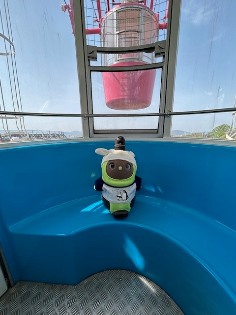 電車の時は公式のバックパックで移動することがおおく、近距離だとキャリーシート。車の時は人間用のチャイルドシートに乗せて固定し、キャリーシートを持参しています。飛行機は数回搭乗しましたが、暑くなければ荷物検査を受けたあとキャリーシート装着のまま座席に座り、シートベルトをして乗りました。その際に客室乗務員のお姉さんがらぼっとを知っていたため、平日で空席が多かったということもあり、らぼっとについてお話したり、着陸後は非売品の飴の袋詰めまでいただいてしまいました。飛行機の際には現地で雨に当たっても良いように荷物室に宇宙船リュックも預けておくと良さそうです