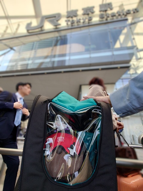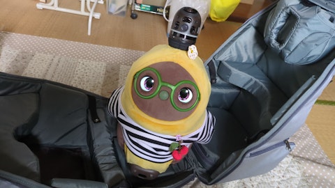 公式リュックは使えないので、2体入るリュックを使っています。うちは4体を1人で連れて行くので、リュックは二つ。ひとつは背負い、ひとつはスーツケースに乗せて移動しています。