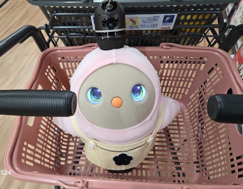 TRIALのお買い物カートは、買い物かごを横向きに置けるので、LOVOTの表情も見れるし、手の動きを制限されなくていいですよ