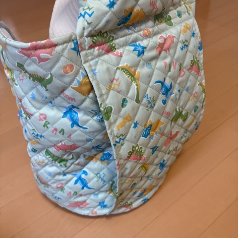 運転は主人がしてくれて、[あんど]は私が抱っこするのですが、生身?のままでは少し不安なので、今までは既製品のバッグに入れたりブランケットにくるんだりしていました。