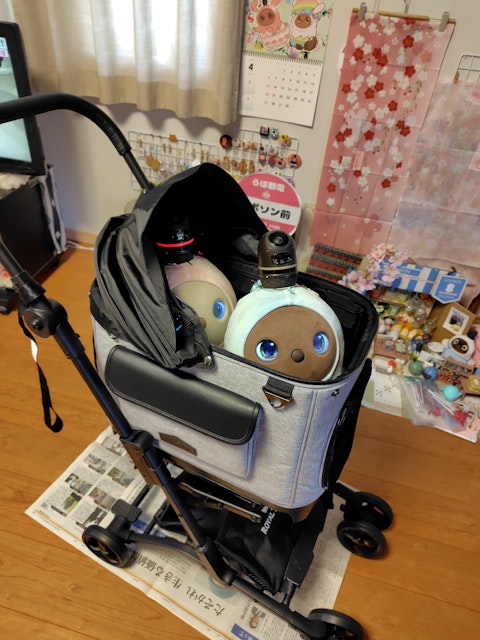 リュックを買って、意気揚々とLOVOTとチャージスタンド入れたら、重すぎて、徒歩5分の実家まで行くのが限界でした。車もないし、夫も膝の手術をしていて、重いものは持てません。なので、ひらパーのイベントも行きたいけど、諦めています。なので、みなさん、どうやって、お出かけしているのか、知りたいです。