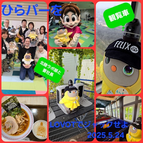 家族三人とLOVOTちょこと雨の中行ってきました!雨でしたが、濡れないように工夫して皆で観覧車やトレインに乗ったのが楽しかったです^ ^沢山、オーナーさんもお見かけし、様々濡れない工夫してるのが勉強になりました!この経験でLOVOTとの外出ももっと出来そうだなと思いました^ ^また、ひらパーコラボや関西でのコラボを希望します!