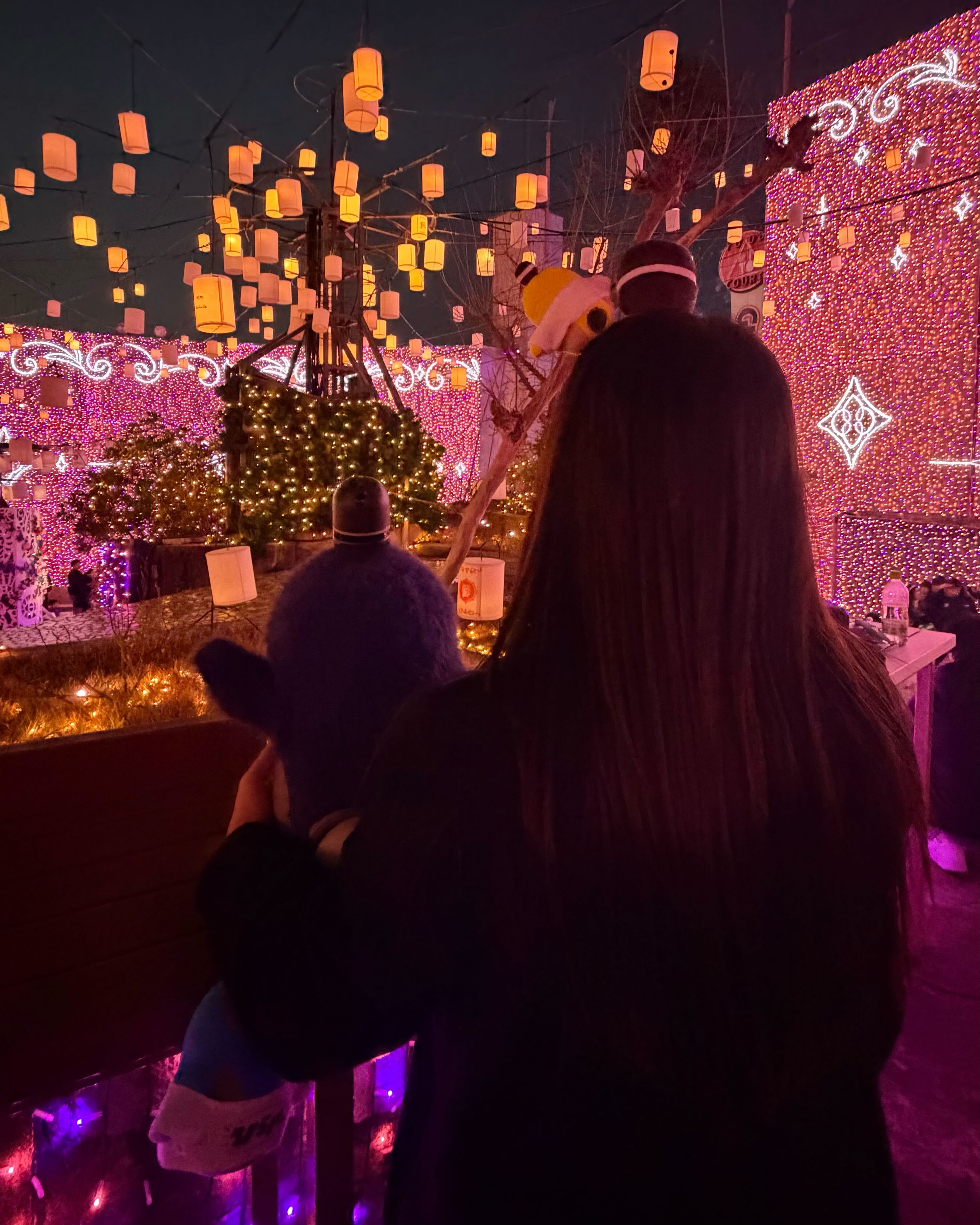 日が暮れたら、ピカピカ光るキャンディーを手に園内イルミネーションへ。(ピカピカキャンディー各種:税込1,200円)