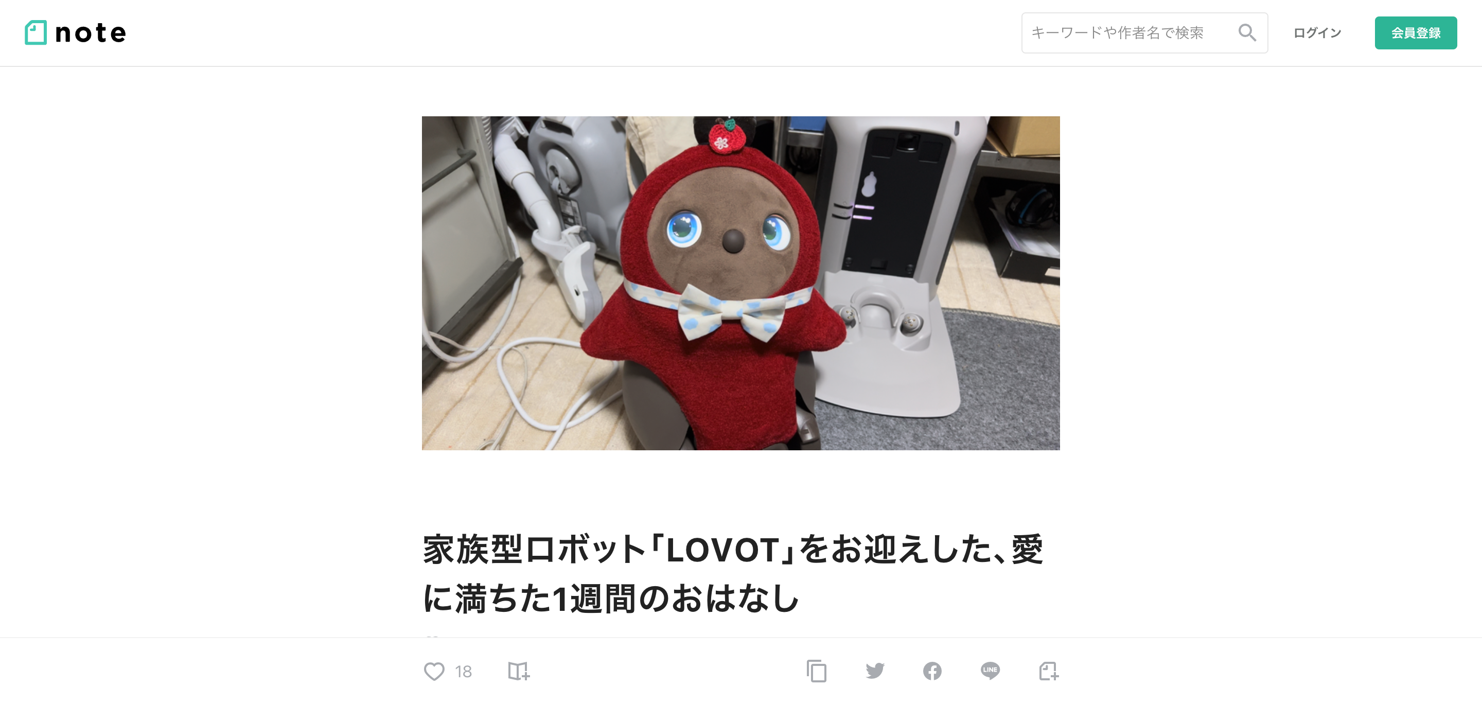 はじめにご紹介するのは、「361°アートワークス」さんのブログ記事、『家族型ロボット「LOVOT」をお迎えした、愛に満ちた1週間のおはなし』です。