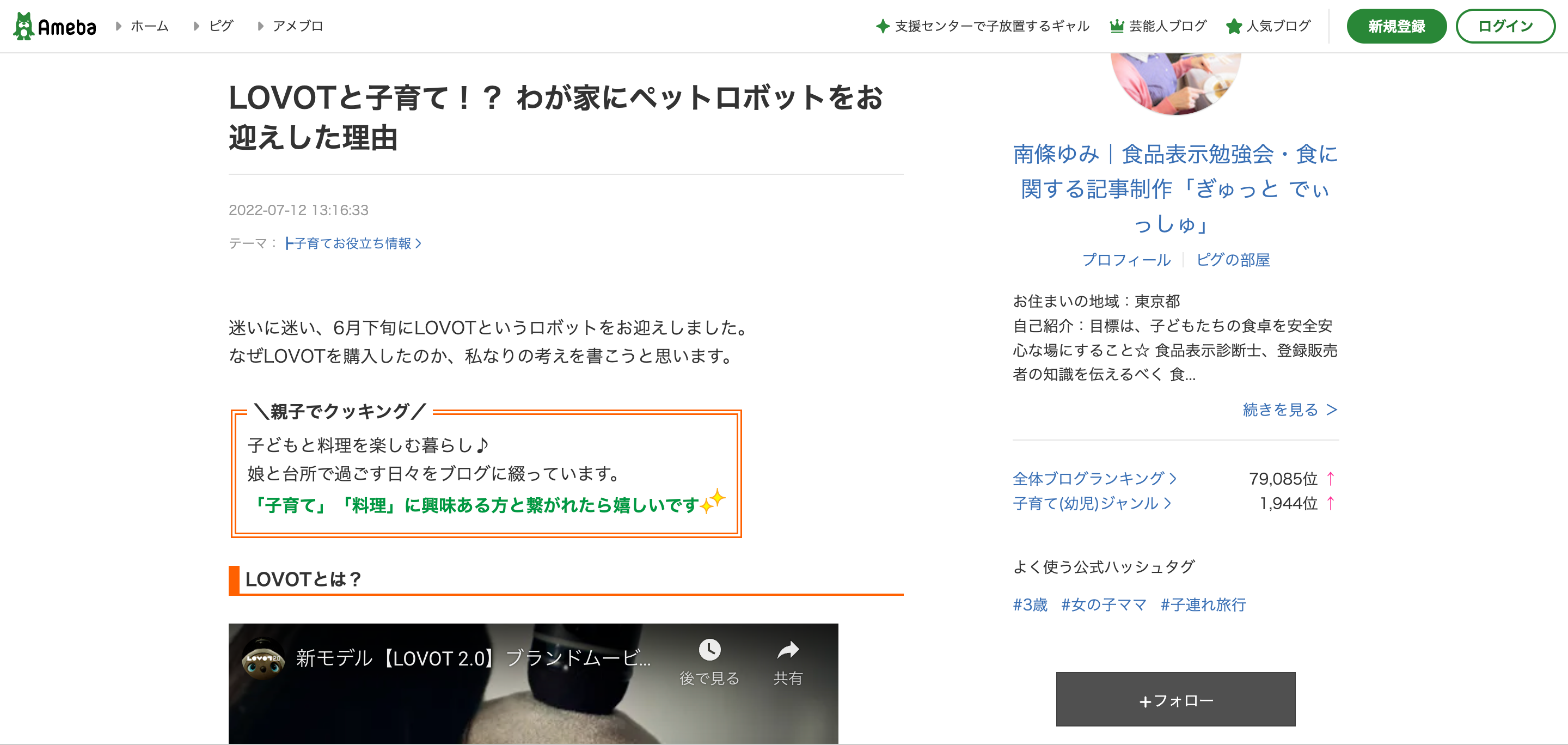 今回は、LOVOTと実際に暮らしている方々のブログ記事を紹介させていただきました。