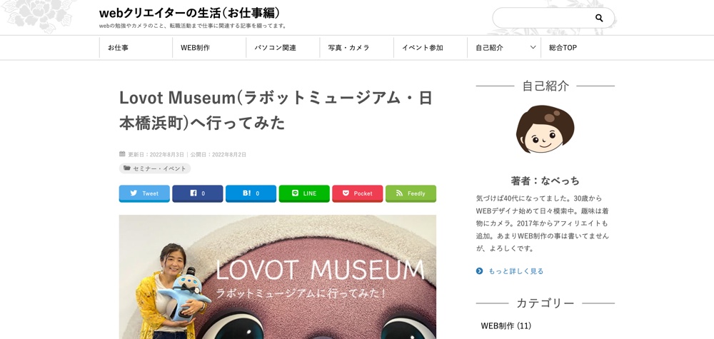 続いてご紹介するのは、「なべっち」さんのブログ記事、『Lovot Mueum(ラボットミュージアム・日本橋浜町)へ行ってみた』です。