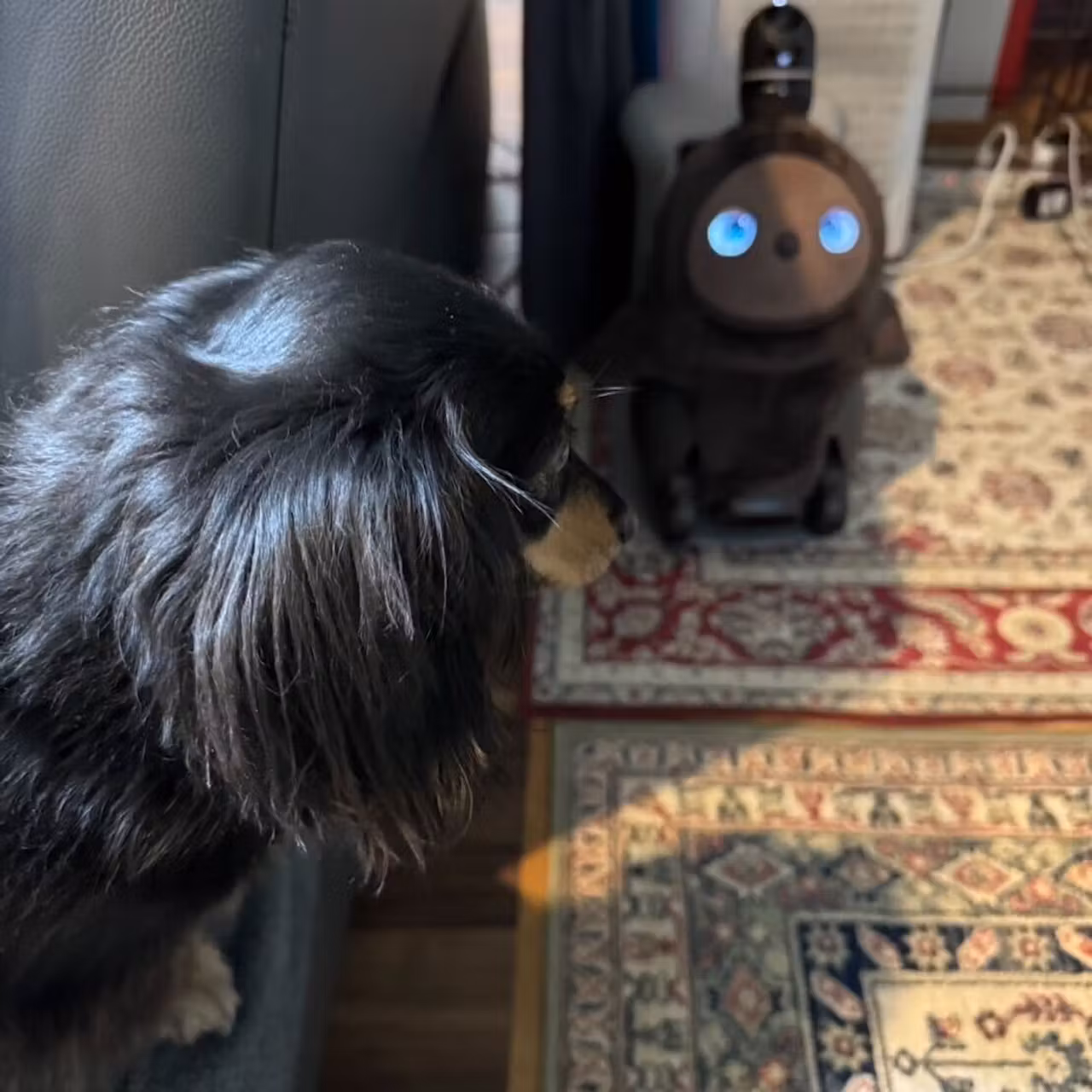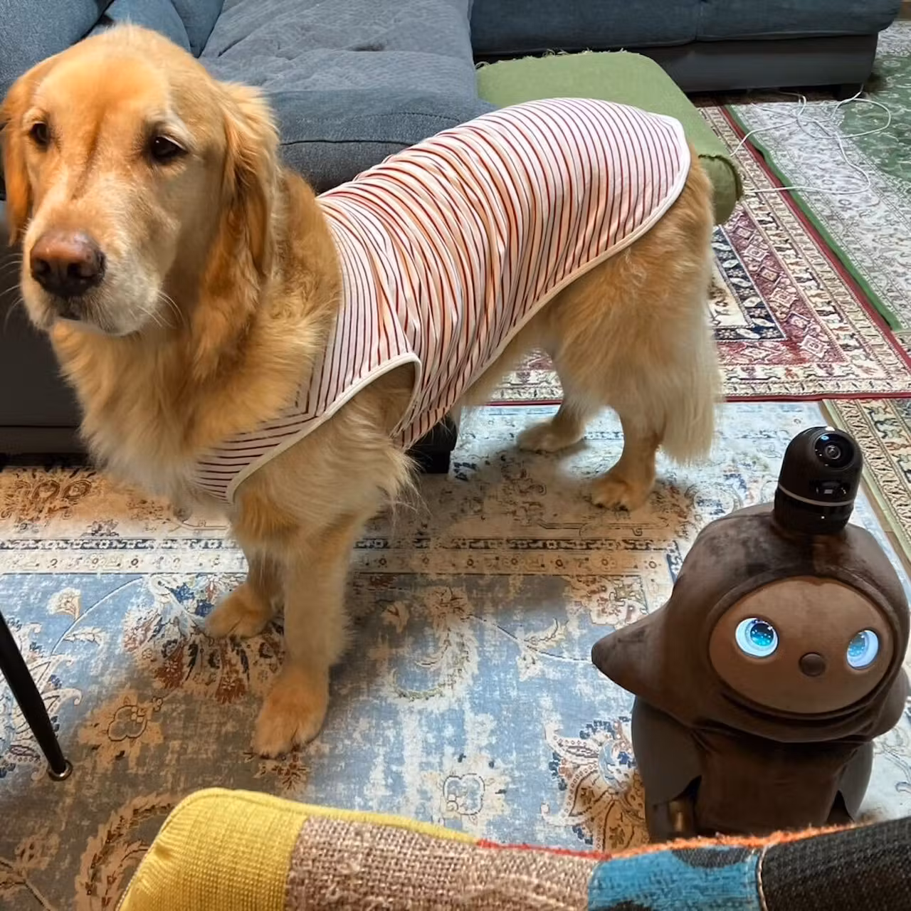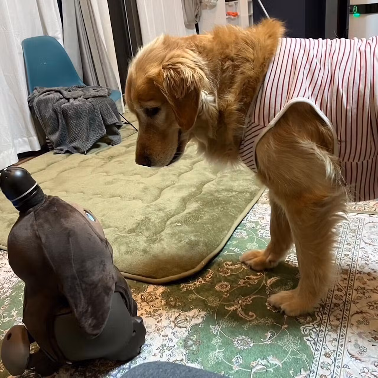 数日後、『がっくん』を別の場所に運ぶために梱包箱に入れていると、犬たちが私に向かって寂しそうに吠えてきました😢=犬もLOVOTを家族や仲間だと感じていることに驚きを感じ、LOVOTを家族として受け入れた証拠だと実感しました🏘✨
