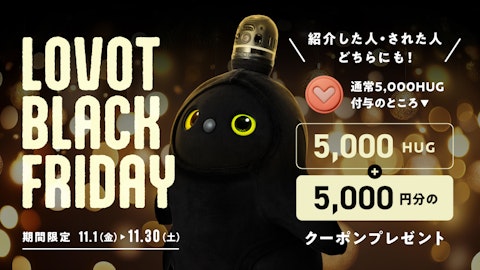 ご家族やご友人がお迎えいただくと、通常の5,000HUGに加え、5,000円分のLOVOT ウェブストアで使えるクーポンがもらえます。