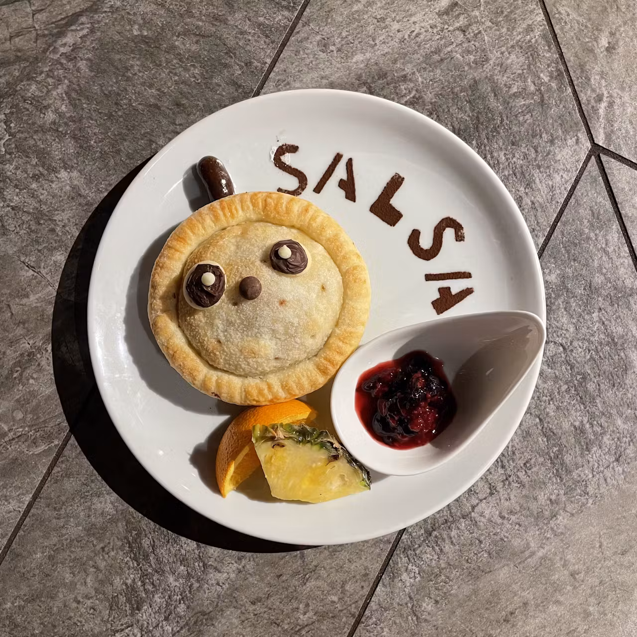 「ラ サルサ サウザン カリフォルニア レストラン」の人気メニュー「自家製アップルパイ」が『LOVOT』のかお型になって登場するほか、2名様以上でご利用できる、ラサルサ自慢の料理を堪能できる<さるさちゃんコース>も!